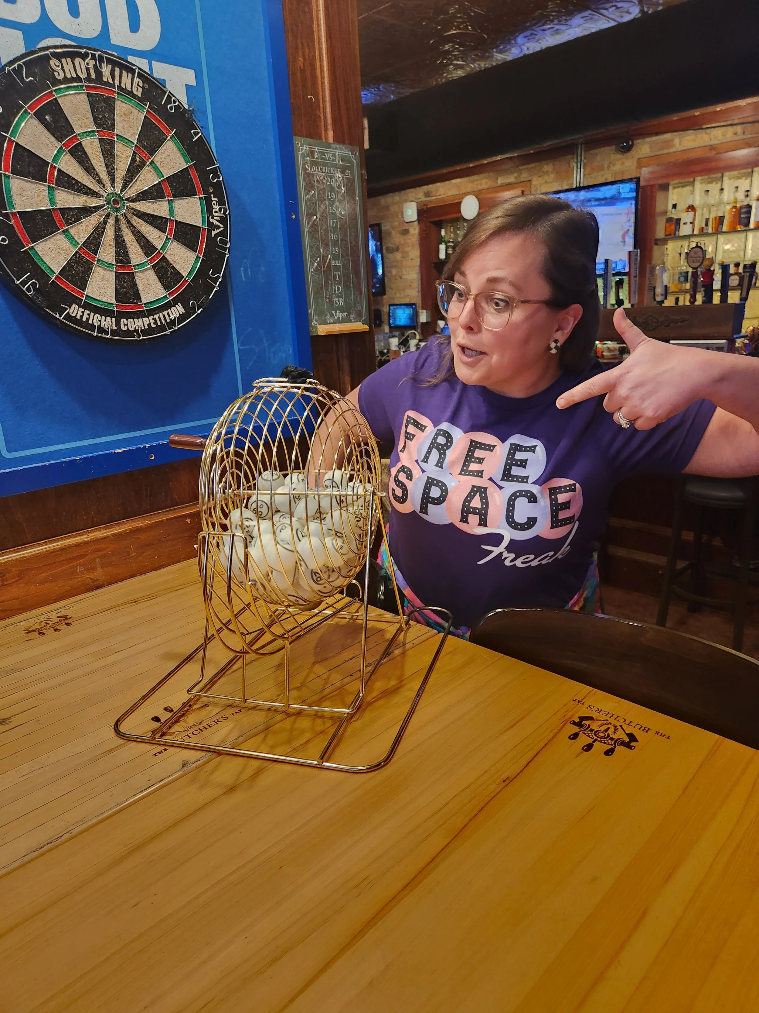 The Bingo Bitch AKA Kim Grossman The Card Kween AKA Kristal Burk The Ball Baron AKA Jonathan Allsop The Marker Madame AKA Tyler Lubinus The Spin Siren AKA Emily Bouroudjian The Dabbing Diva AKA Sean Buckley The Freespace Freak AKA Stephanie Shine